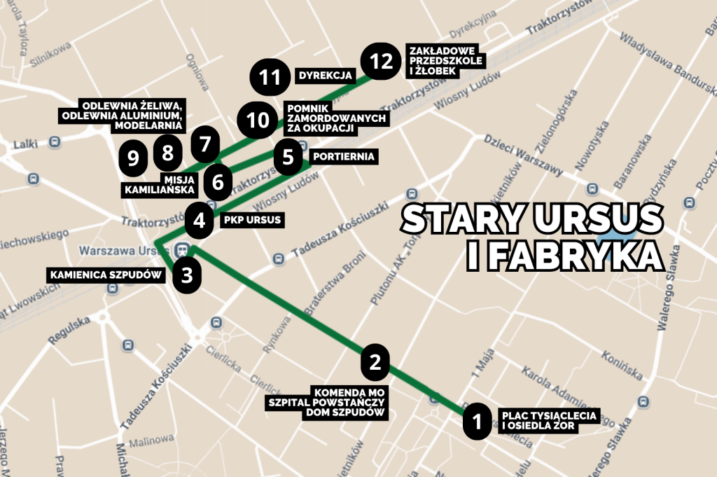 Zapraszamy do zapoznania się z materiałem ze spaceru historycznego po Starym Ursusie i Fabryce. Spacer w założeniu ma pokazać w jaki sposób rozwijały się tereny Ursusa dzięki urbanizacji i industrializacji. Start: Plac Tysiąclecia przy ul. 1 Maja, koniec: budynek dawnego żłobka zakładowego przy ul. Traktorzystów 22.