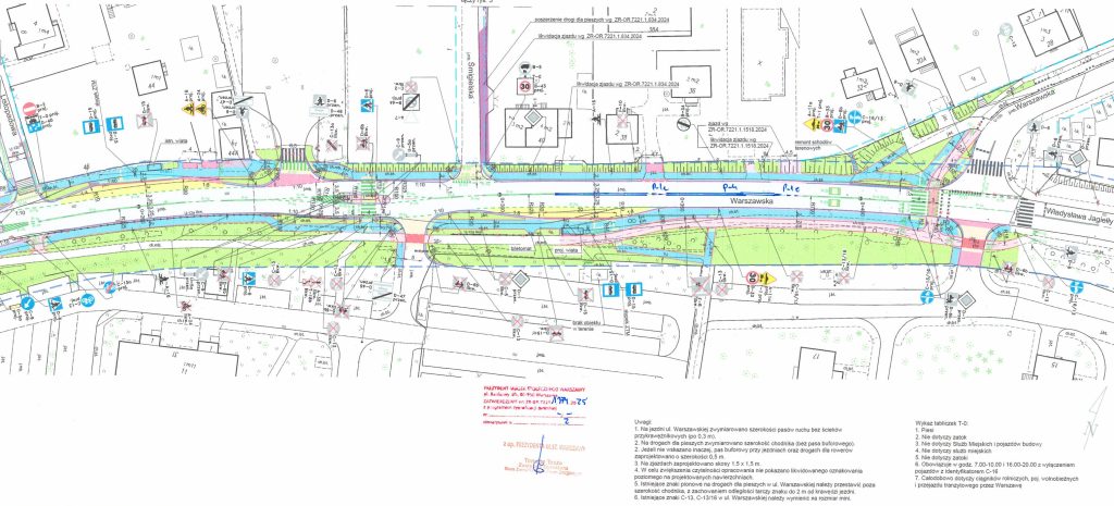 • Dodatkowe przystanki autobusowe przy Warszawskiej, na wysokości Orłów Piastowskich 34 i SP11 (bez zatok);