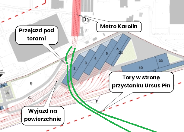 Technicznie przedłużenie jest możliwe do wykonania, ale nie pozostawiono gotowej “odnogi” w stronę Ursusa. Jest możliwość wydrążenia dwóch tuneli (po jednym na każdy tor) przed komorami rozjazdowymi, które będą schodziły w dół w stronę naszej dzielnicy… Ale albo będzie to bardzo kosztowne, albo będzie wymagało wyłączenia na jakiś czas zjazdów do STP Mory. Czy m.st. Warszawa zdecyduje się na taki ruch?