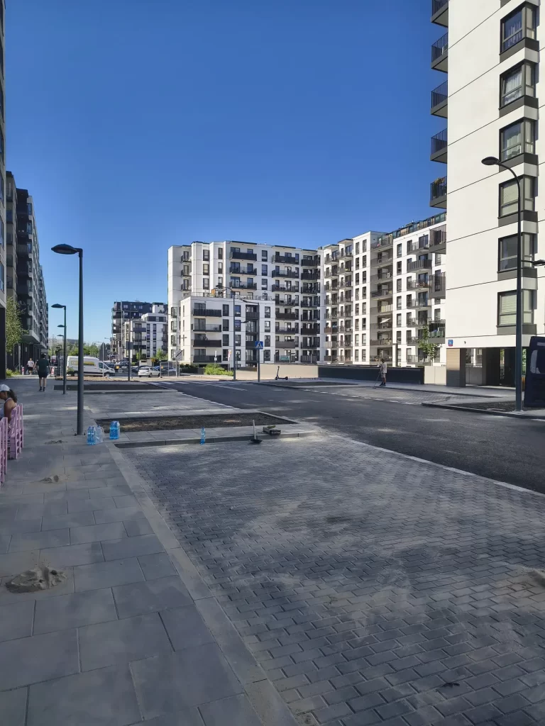 Centralna ulica osiedla wreszcie przejezdna na całej długości. Trwają jeszcze prace nad zielenią i drobne poprawki, ale zasadniczo można przejechać autem od Licencyjnej do Dyrekcyjnej. Zakończył się pewien bardzo uciążliwy etap w historii Szamot.