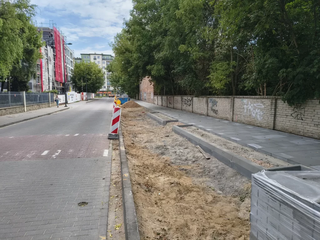 Deweloper prowadzi przebudowę krótkiego odcinka wzdłuż osiedla przy kanale Konotopa. Prace powinny zakończyć się do końca roku.