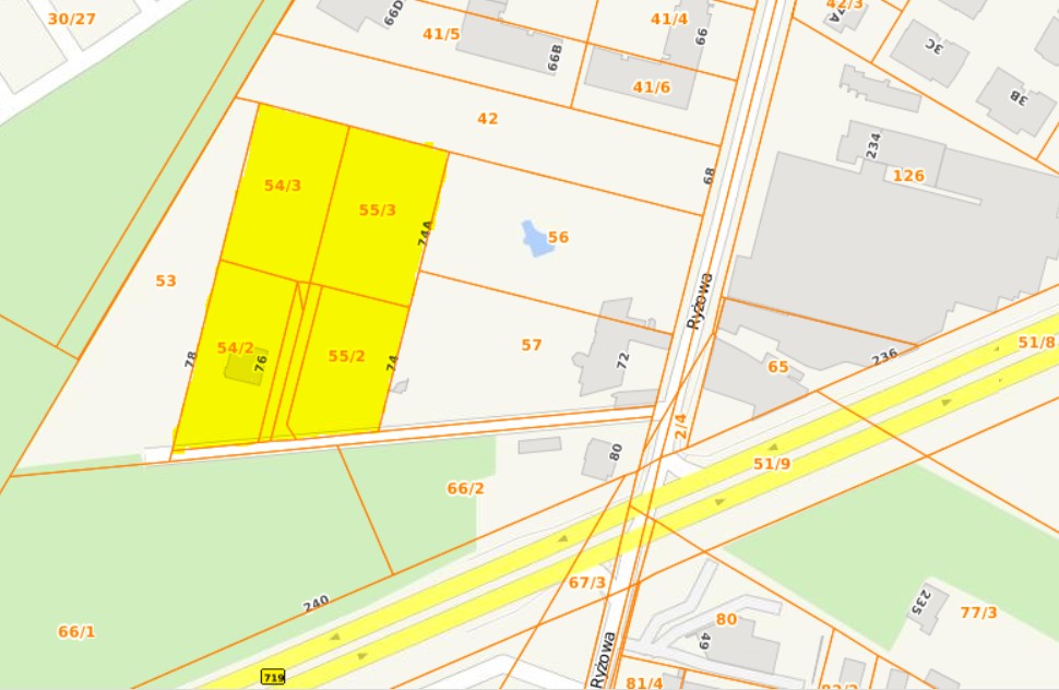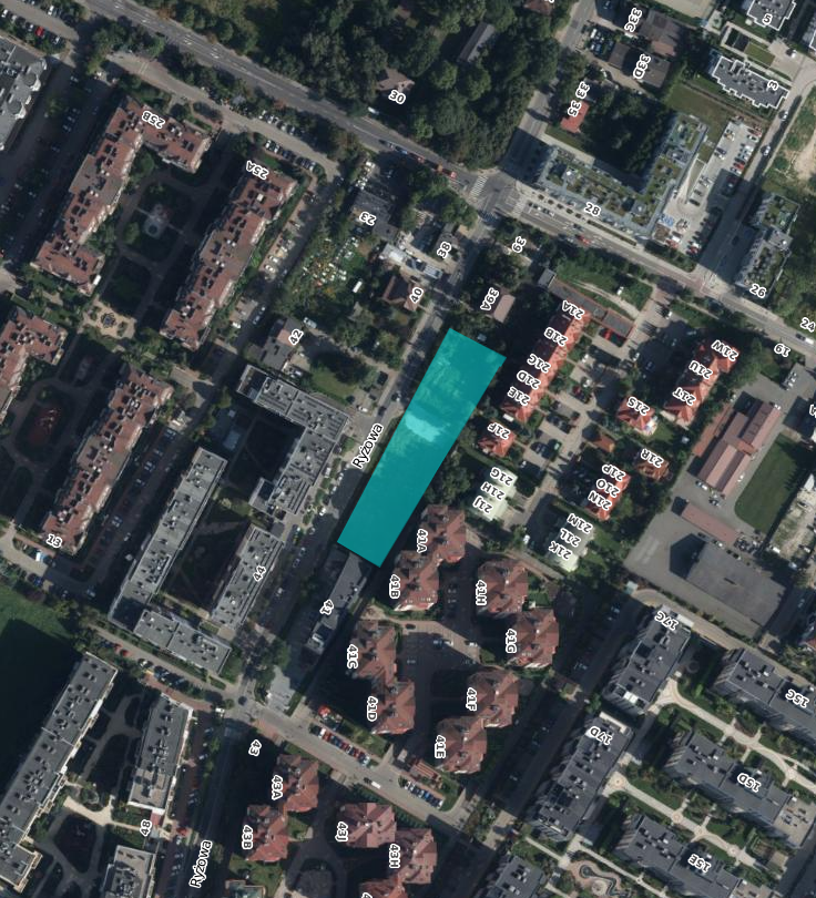 Wnioskuje firma AMDevelopment, chodzi o 2 budynki mieszkalne wielorodzinne + usługi, garaż podziemny i zbiornik retencyjny. Mamy nadzieję, że w ramach umowy z ZDM uda się dobudować brakujący chodnik i kanalizację przy Ryżowej.