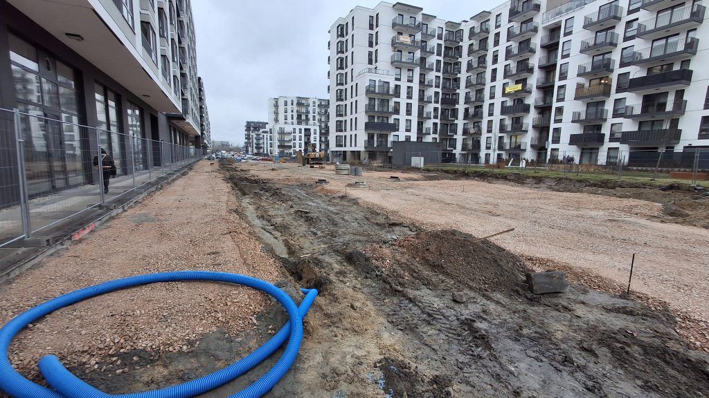 Osiedle “Urcity” trafiło oficjalnie do sprzedaży – będą to 4 budynki po 8 pięter, niegrodzone, z lokalami w parterze wyłącznie od strony ul. Posag 7 Panien. Budowa póki co jest całkiem przyzwoicie obsługiwana – codziennie trwa zamiatanie i czyszczenie drogi, choć pewne detale trzeba jeszcze dopracować.